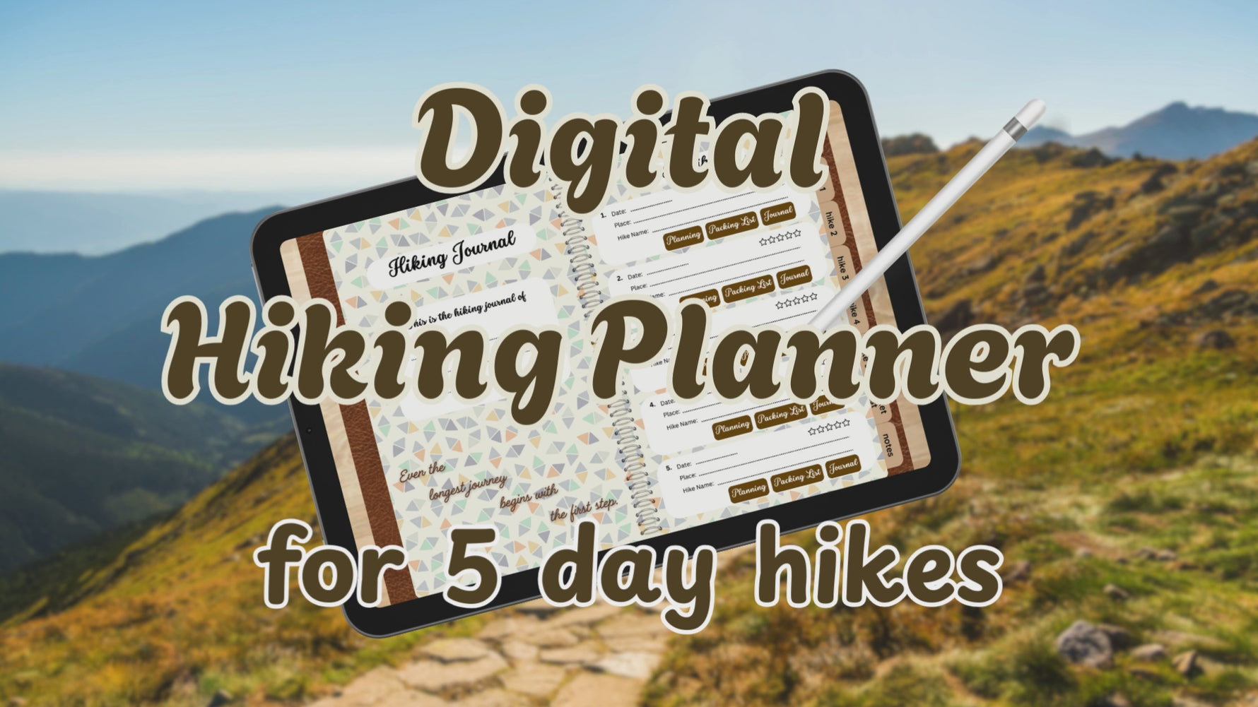 Digital Hiking Planner – 5 Day Hikes | Journal, Packing List & Checklist for Your Tablet