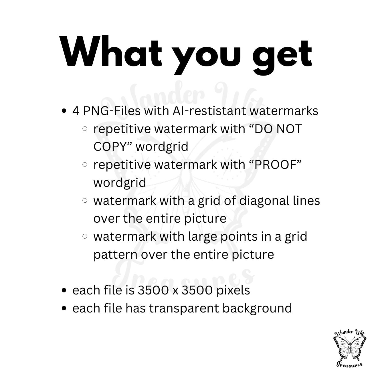 Ai-resistant Watermark Bundle of 4 - Linegrid, Pointgrid, "Do Not Copy" & "Proof"